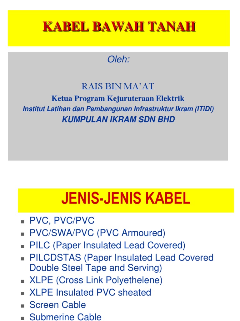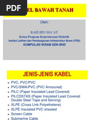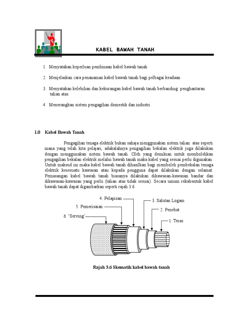 Kabel Bawah Tanah Voltan Rendah Nota Kejuruteraan Teknologi Elektrik Vokasional Politeknik Ikm Ilp Universiti